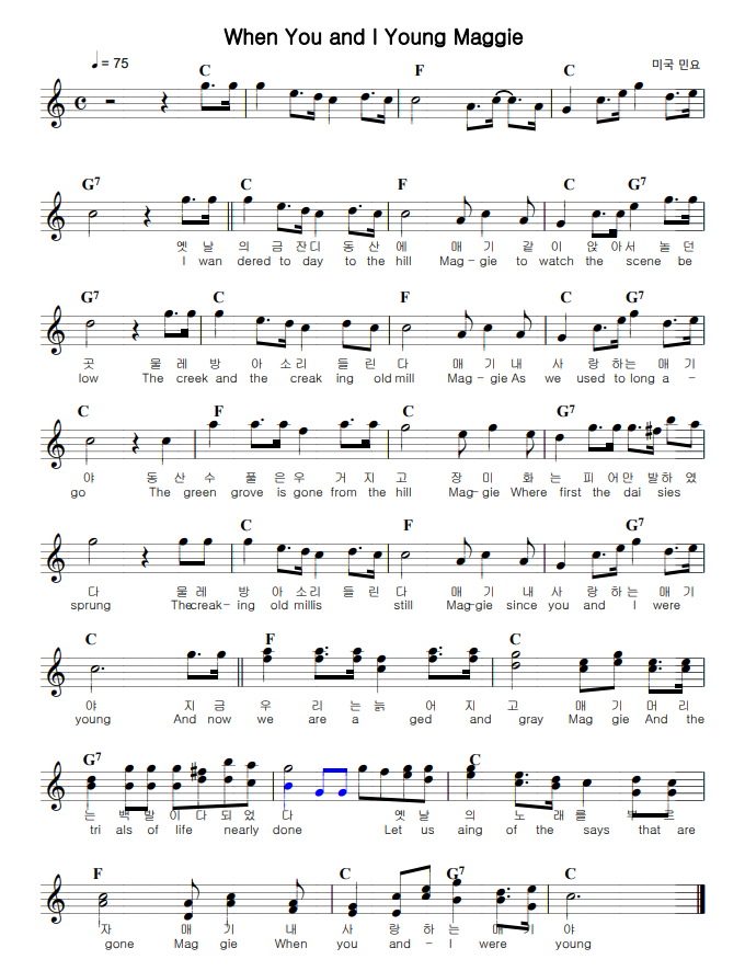 When You And I Were Young Maggie Ann Breen 메기의추억 악보 MR - YouTube
